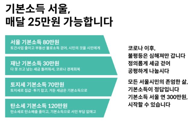 - 모든 서울시민에게 80만 원의 서울 기본소득 지급