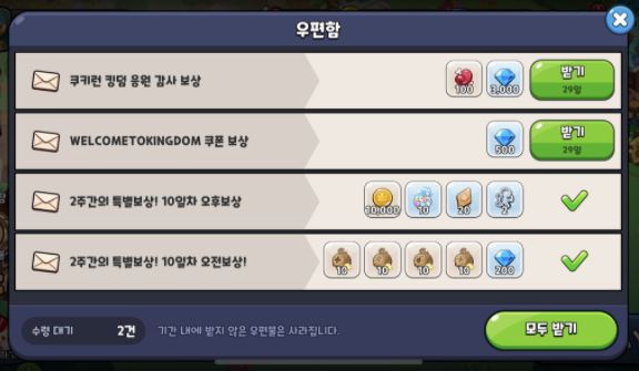 원래는 KINGDOMNAMBLUE라는 크리스탈 500개짜리 쿠폰도 있었는데 3월 14일자로 사용이 종료되었다고 합니다. 한 계정에서 여러 개의 쿠폰을 사용하는 건 괜찮지만, 각 쿠폰은 계정당 1번씩만 사용 가능합니다.