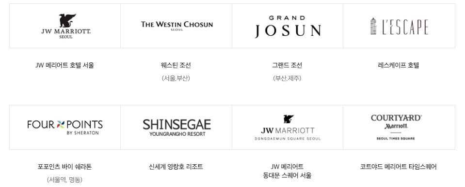 이외에도 JW 매리어트 호텔, 웨스틴 조선, 그랜드 조선, 레스케이프 호텔, 파라다이스 호텔, 그랜드 힐튼 서울 호텔 등 여러 호텔에서도 신세계 상품권을 쓸 수 있습니다. 부산 신세계 센텀시티 안에 있는 스파랜드 및 아이스링크에서도 신세계 상품권으로 결제가 가능합니다. 문화 생활을 즐기려면 CGV, 메가박스, 영풍문고, 교보문고, 웅진 플레이도시, 한솔 오크밸리, 자유 CC, 이포 CC 등에서도 사용 가능합니다.