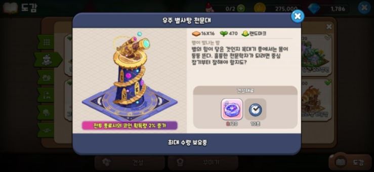 젤리는 게임 내에서 별로 부족한 재화는 아니기 때문에 다른 랜드마크들에 비해 상대적으로 중요도가 낮습니다.