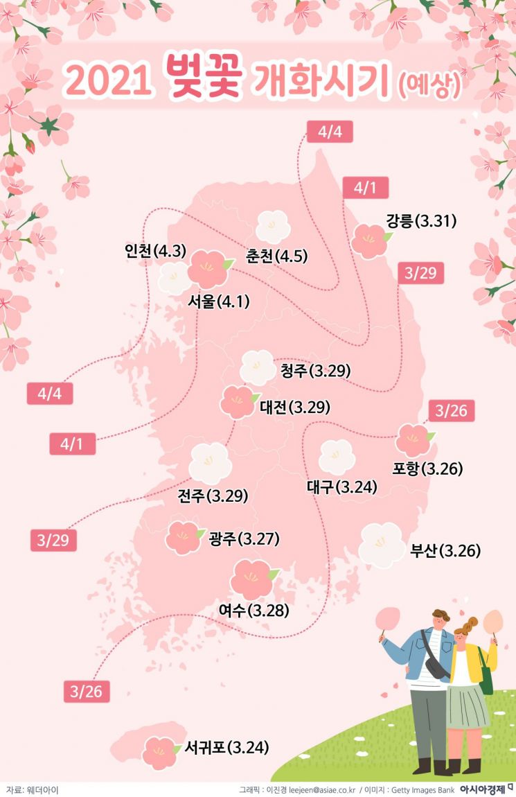 2021 벚꽃 개화시기 및 만개시기