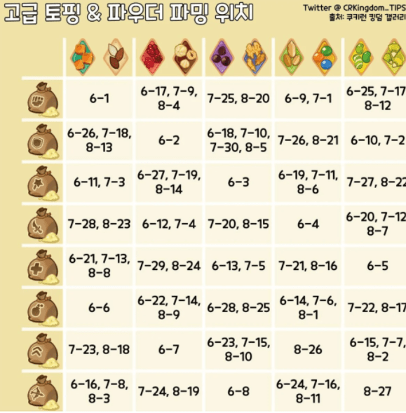 맵을 돌기 전에 필요한 토핑 및 파우더의 위치를 미리 파악해두면 좋습니다. 여러 개의 쿠키를 동시에 키우는 중인데 동일한 파우더가 필요하다면, 각 쿠키에 필요한 토핑과 파우더를 동시에 파밍할 수 있는 곳을 찾아주면 됩니다.